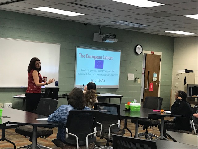 On Tuesday, September 17, 2019, the Nash Community College Global Scholars (GS) program hosted a “Brexit Breakfast,” an interactive film screening experience facilitated by Katie Hoffer, English Instructor and Co-Director of Global Scholars. Students were guided through the historical background of the United Kingdom leaving the European Union and what that means for individuals in Nash County, USA.