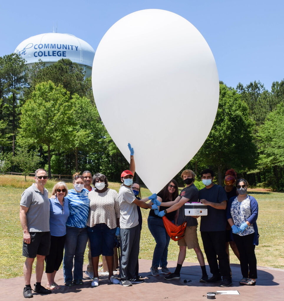 Members of Nash Community College’s High Altitude Balloon Team, “The Nashtronauts”, launched this year’s payload on the campus on Wednesday, May 19, 2021. The balloon launch and payload recovery are the final steps of a six-month-long, open-ended Engineering project.At the beginning of the academic year, NC Space Grant provides a list of rules and basic components that must be included in the balloon’s payload. Due to the COVID-19 pandemic, the 2020 and 2021 statewide ballooning competitions were canceled. However, a generous donation to the NCC Foundation allowed the Nashtronauts to continue working and learning. Alan and Ashley Moore established the Moore Family Fund for College Support that provides funding for the NCC Foundation Campus Mini-Grants and the Student Ambassador programs. The project was funded through a campus mini-grant.